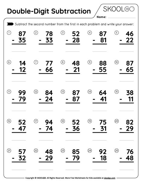 Subtraction Double Digit Worksheet. Learners will solve 16 practice problems, regrouping when needed. Subtract the ones digit from.