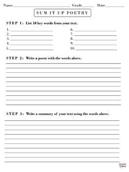 Sum It Up Reading Worksheet. The group's sum of the. Write these in the blank area.
