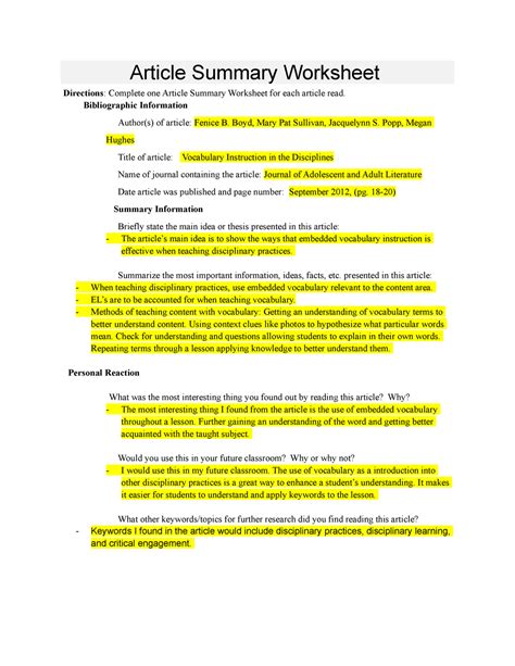 Article Summary Worksheet worksheet from novenalunasolitaria.blogspot.com