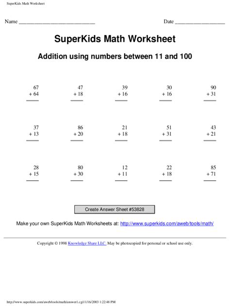 Superkids Math Worksheet. Create your own multiplication math facts worksheets. A considerable amount of totally free.