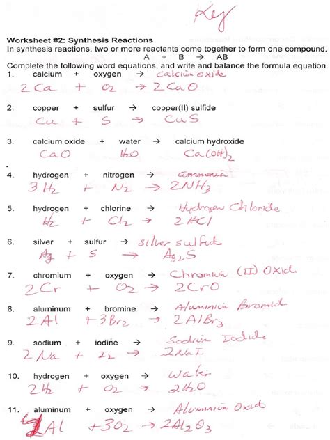 Synthesis Reaction Worksheet Answer Key. Web chemical reactions answer key 1. Teacher notes on next page!