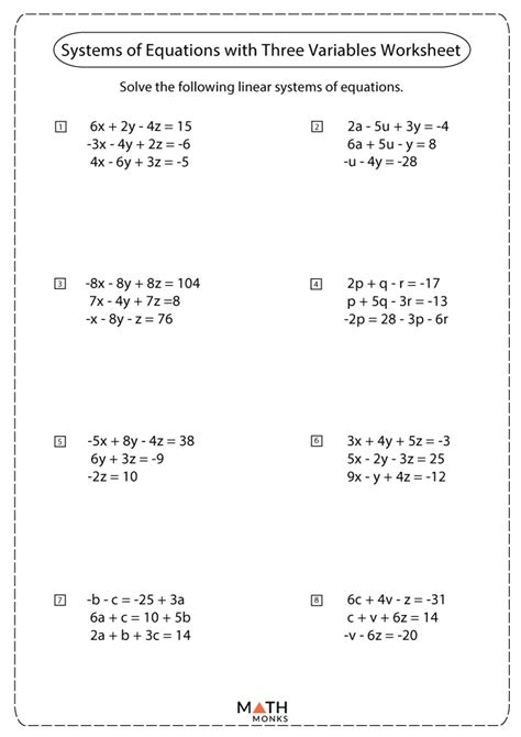 3 Variable System of Equations Worksheets Math Monks from mathmonks.com