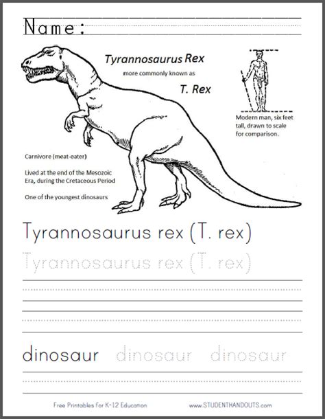 TRex Worksheet Twisty Noodle from twistynoodle.com