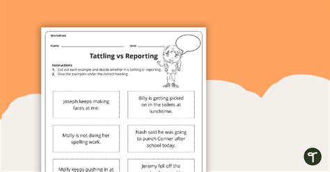Web a worksheet to consolidate students knowledge of tattling vs reporting in the classroom. Use this worksheet at the beginning of the school year or after long breaks to help students. It includes a color poster, coloring sheet, and cut and paste.