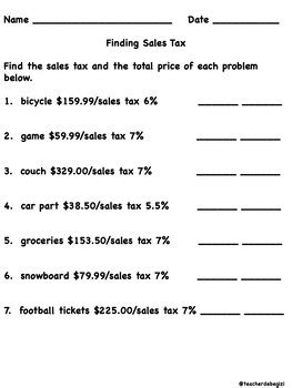 Sales Tax Worksheet 7Th Grade from sustainablecitynews.com