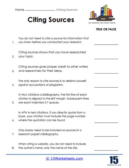 Teaching Citing Sources Worksheet. Web citing a source correctly is an important lesson for students to learn in giving credit for material used for research assignments. Search search educational resources search menu sign in try.