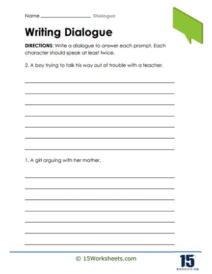 Teaching Dialogue Worksheet. This can be in a spoken or written form. If your students struggle with dialogue writing and correct use of quotation marks in their.