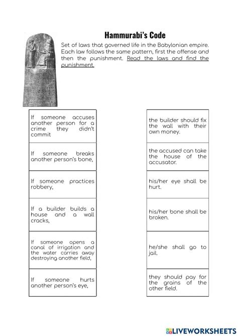 Fun partner activity to review students knowledge of this topic in history1. Web cuneiform and the code of hammurabi (double worksheet!) by. Worksheets are code of hammurabi activity, hammurabis code,.
