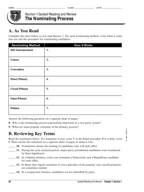 Chapter 7 Section 1 The Nominating Process Quiz Answers.