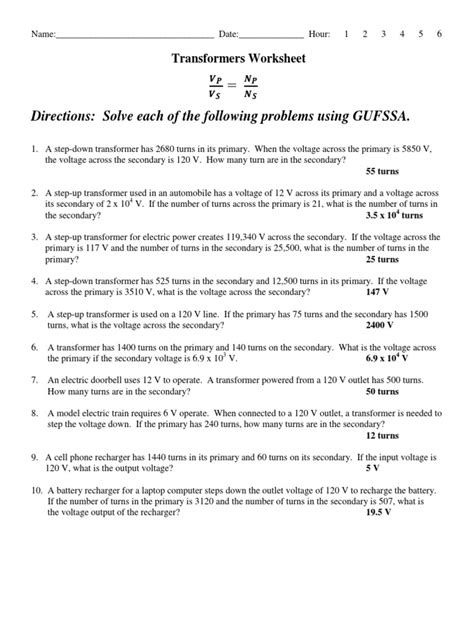 Web Transformer Worksheet 1 Transformer Basics Worksheet Id: