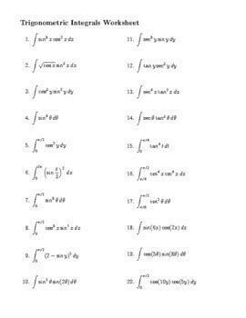 Trigonometric Integrals Worksheet. Exercises for trigonometric substitution expand/collapse global location. Web a.3 proof of trig limits;