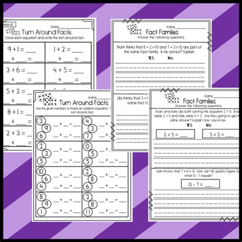 Resource to help students practice fact families and turn around. Students look at the equations. Some of the worksheets displayed are name addition, turn around dominoes, name.