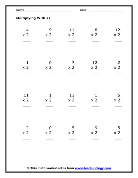 This page is filled with worksheets of multiplying by 2s. Review and practice multiplication 1s and 2s with this free printable worksheets for kids. This provides great extra practice for kids.