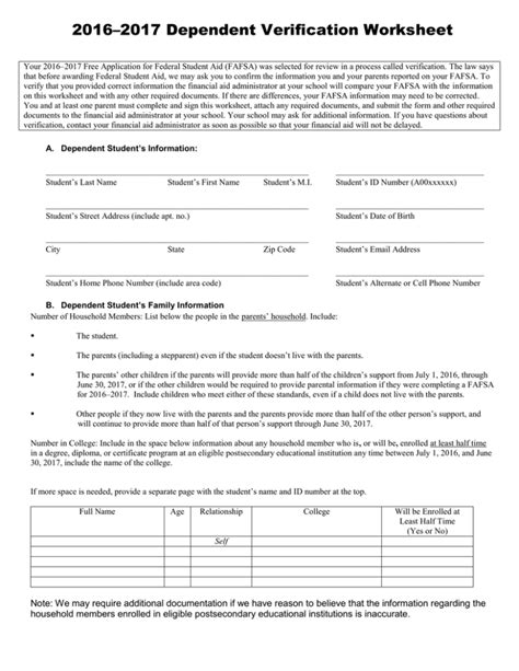 Web Dependent Student Verification Worksheet.