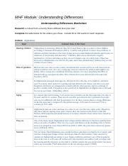 Web Bshs 345 Week 2 Understanding Differences Worksheet Complete The Understanding Differences Worksheet.