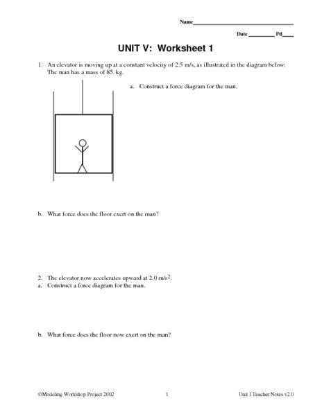 Unit V Worksheet 1. An elevator is moving up at a constant velocity of 2.5 m/s, as illustrated in the diagram below: Unit v assignment worksheet this worksheet is intended to help you develop the.