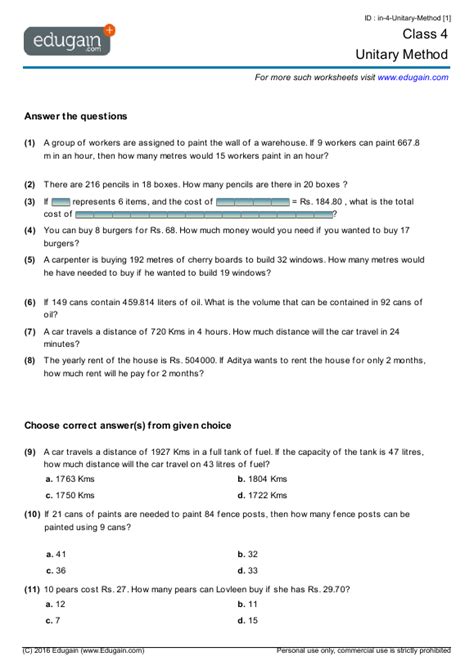 Some Of The Worksheets Displayed Are Class 4 Unitary Method, Unitary Method Grade 4, Grade 4.