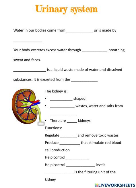 Web Live Worksheets > English > Science > Science > The Urinary System.