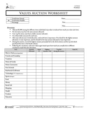 Web option 3 worksheet name_____ period_____ values auction to spend in an auction where the only things to buy are values. Each student will complete part ii of the values auction worksheet. Values play a role in.