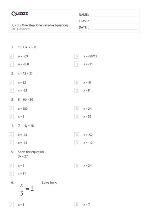 Plug in three different values of the variable. 2 + x = 4. Web browse printable 6th grade solving equation worksheets.