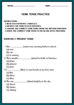 Verb Tense Practice Worksheet. Verb tenses can shift several times even in a short text; There are three categories into which tenses can be divided, namely the.